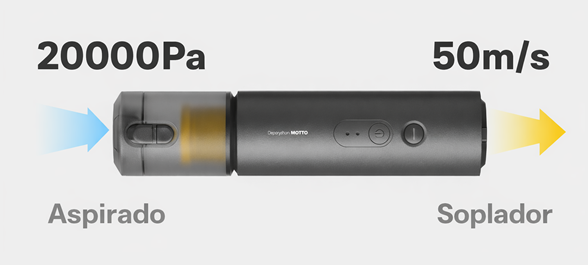 El diseño de estación de trabajo 4 en 1 (aspirar, soplar, inflar y sellar al vacío) permite limpiar coches, ordenadores, teclados y pelos de mascotas, inflar flotadores o kayaks, o envasar al vacío. Sin embargo, no se recomienda para residuos húmedos.